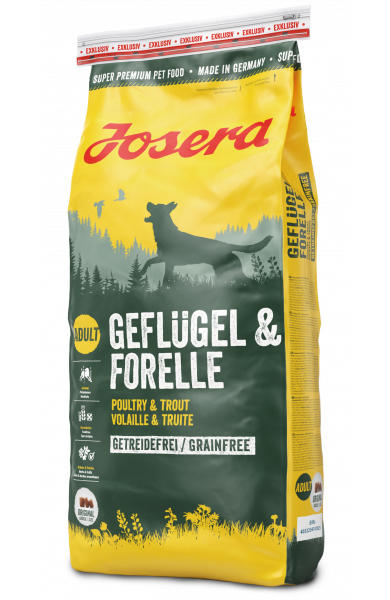 Für die sportlichen Naturliebhaber liefert unser JOSERA Geflügel & Forelle die nötige Energie. Die getreidefreie Rezeptur ist mit Süßkartoffel und Erbse verfeinert.